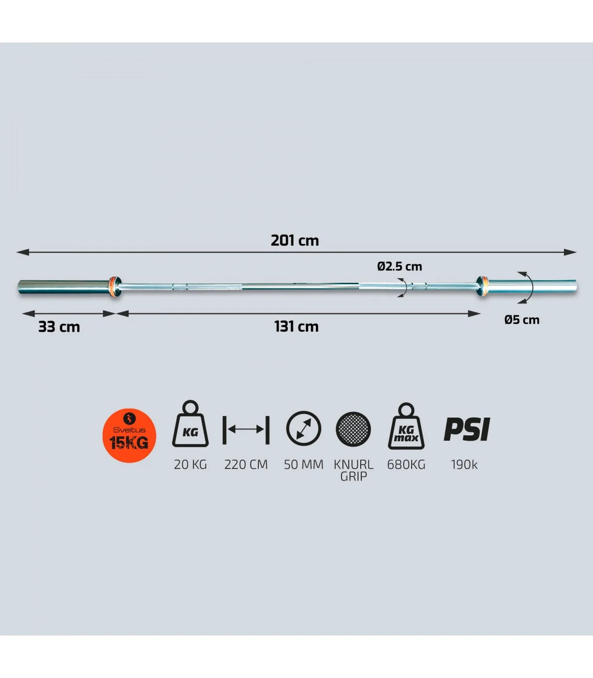 Cette barre olympique de 15kg a été créée pour les passionnés qui ne font aucun compromis entre esthétique et solidité.
