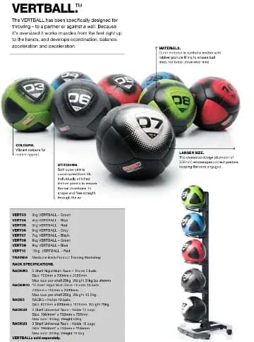 • Vertball : Le pack inclut également des Vertballs, ces ballons lestés polyvalents. Ils sont essentiels pour le travail du gainage, le renforcement de la sangle abdominale, et peuvent être intégrés dans des exercices de lancer, d’équilibre ou de rééducation.