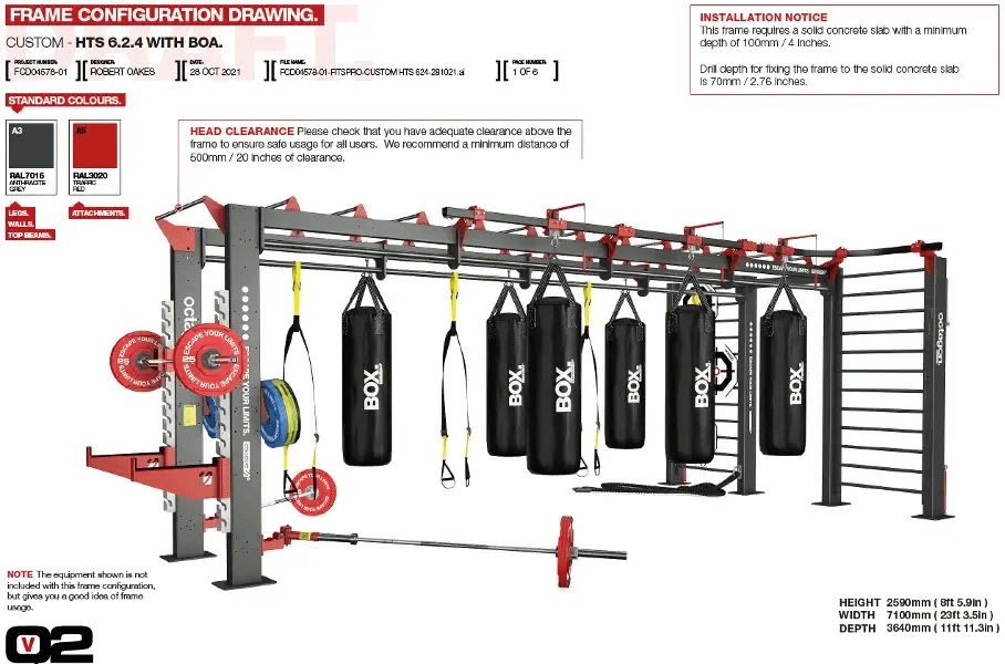 • Utilisation : Cross Training, Functional Training, Boxe (avec 5 emplacements pour sacs), Haltérophilie/Force.